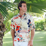 This beautiful resort inspired art work takes you away to the destination of your dreams, Hawaii ? Florida? Caribbean islands? Â blowing palm trees and flowers just brings this piece of wearable art to life.Â