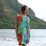 This beautiful resort inspired art work takes you away to the destination of your dreams, Hawaii ? Florida? Caribbean islands? Â blowing palm trees and flowers just brings this piece of wearable art to life.Â